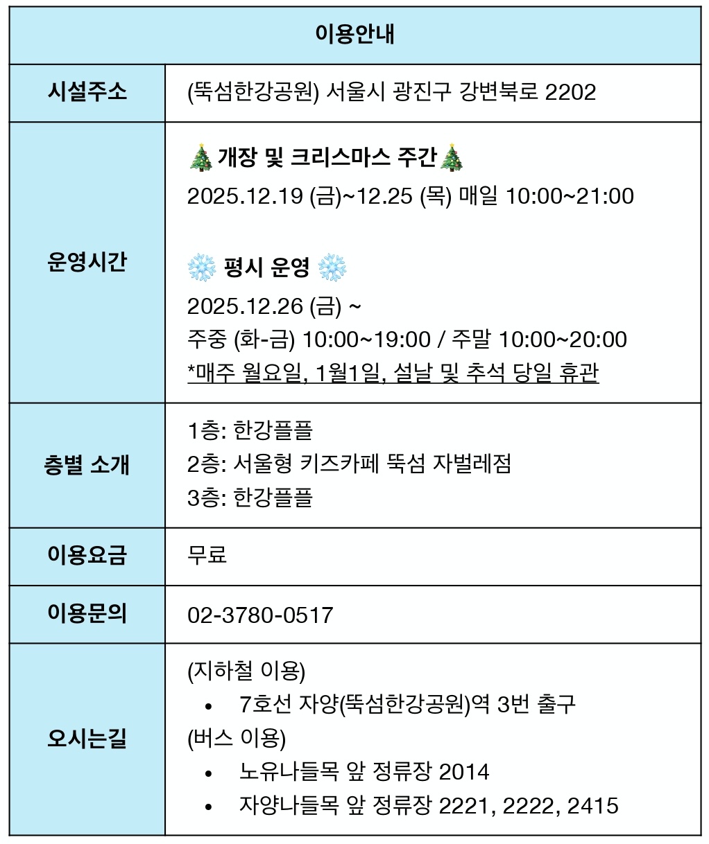 한강플플 개장 안내 (2025.12.19~)
